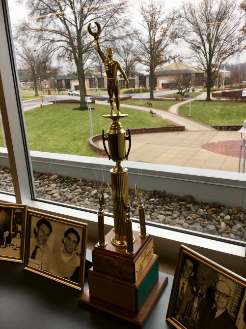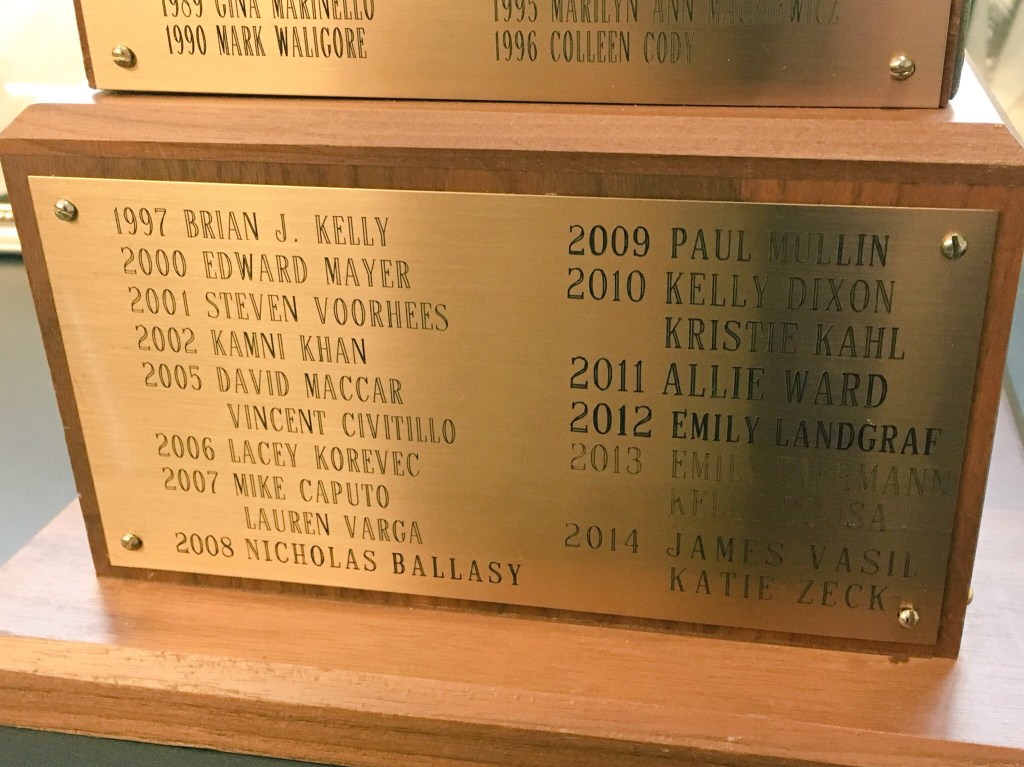 The Ferris Award used to sit in a display case in a hallway near the journalism faculty offices (and likely still does), but I had not seen it in years and it was nice to hold it again. And that’s when I realized something…21 years after winning it, I noticed my last name is spelled wrong. As it turned out, there was another former Ferris Award winner in the room that day who had the same problem. Of course, I complained about it, but it was mostly for comedic effect.