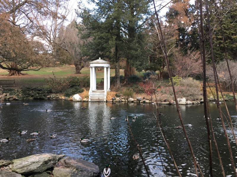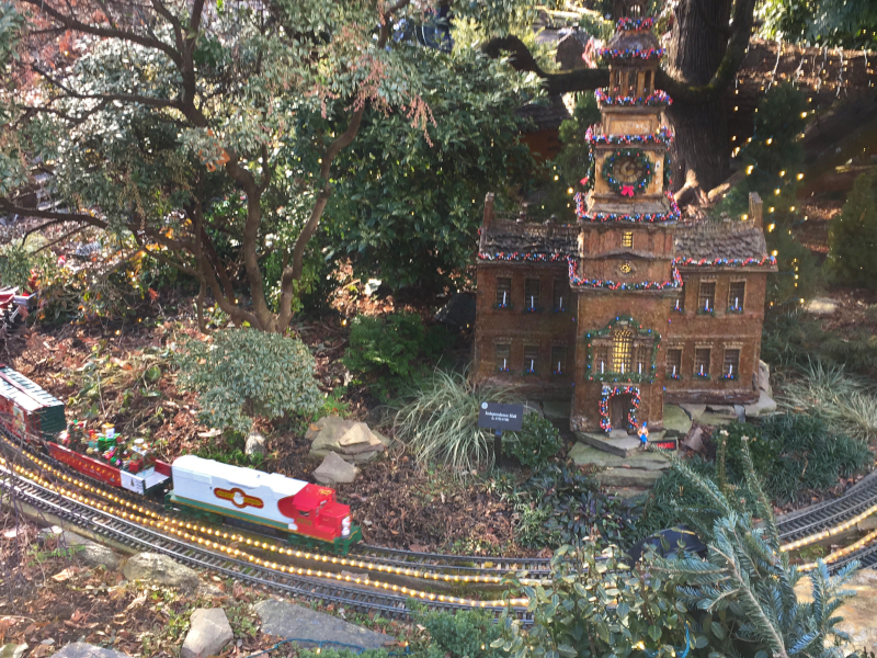 Earlier this month, we reserved free tickets from our local library and made the trip to Morris Arboretum in Philadelphia. While it’s obviously not the season for flora, the grounds are still interesting with sculptures and trees, etc. The big draw these days is the Holiday Gardens Railway, which can be seen in a couple of the pictures above and below.