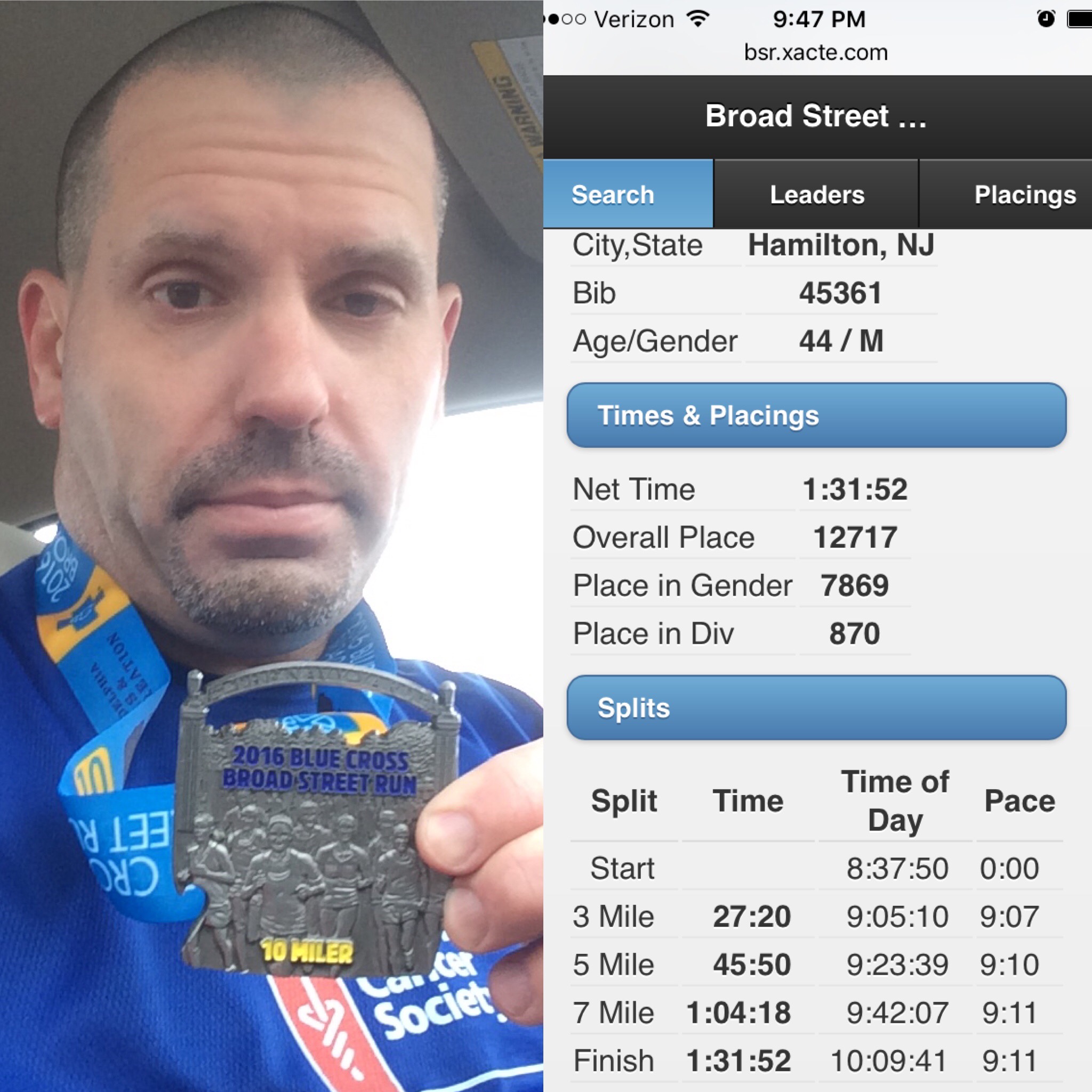 Well, exactly one week after my disappointing 5:14:25 finish in my first-ever marathon, the New Jersey Marathon, I lifted my spirits with a PR in my third Broad Street Run in four years on Sunday, May 7. Even that wasn’t easy, though.